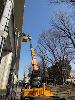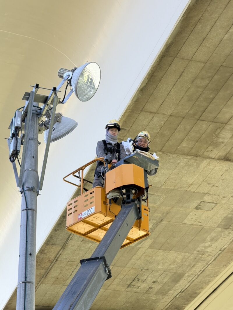 毎年恒例の現場!🏟 お知らせ 2026.01.27 今年もこの現場の時期がやってきました☺ 笑顔で高所作業しています(笑) 最初は怖かったはずなのに、、、慣れるんですね💦 正男君、悠斗君、寒い中お疲れ様です!!!